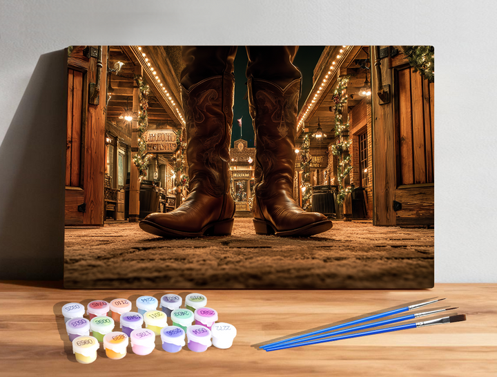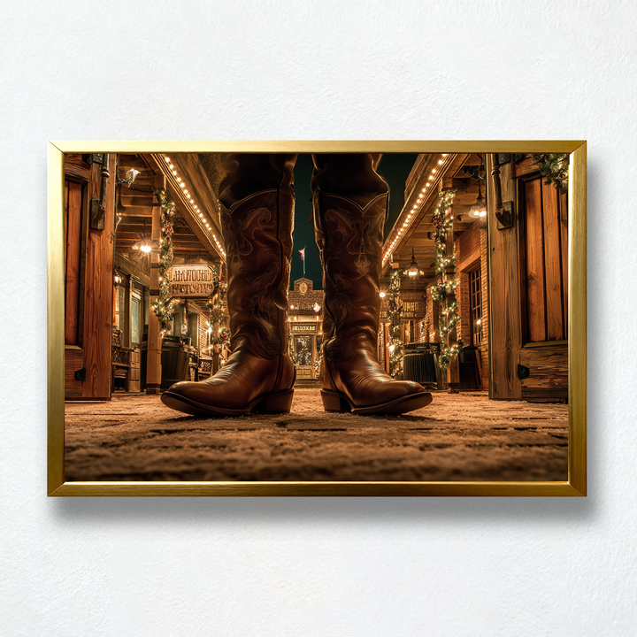 Western Christmas Theme – Classic cowboy town under festive lights.