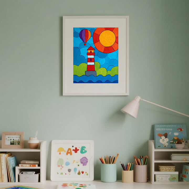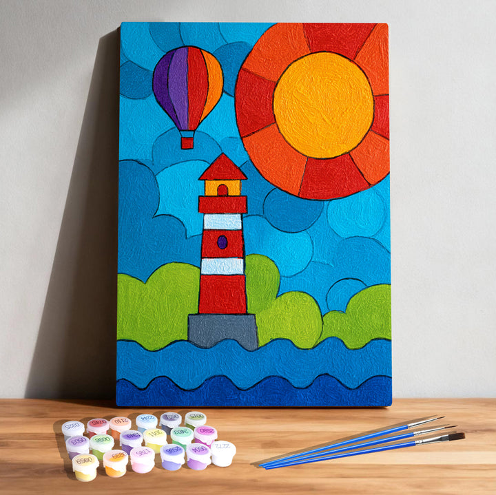 Hot Air Balloon Lighthouse – Kids Paint by Numbers Kit | PaintEasy
