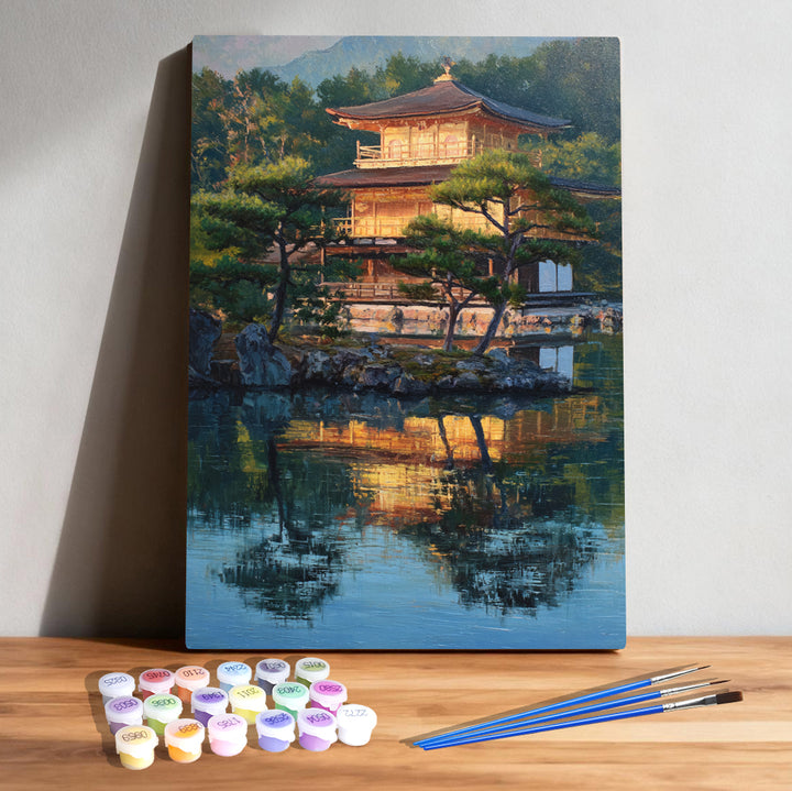 ✨ Kinkaku-ji Golden Pavilion Paint by Numbers Kit | Kyoto Lakeside Sunset | PaintEasy