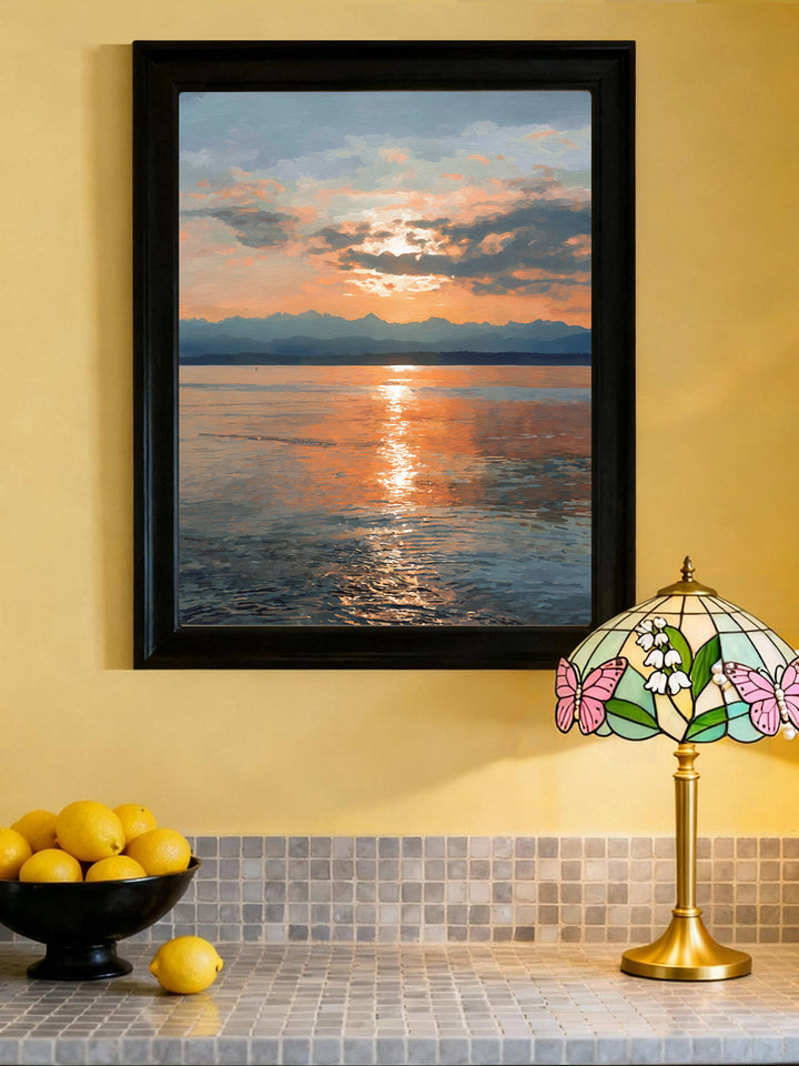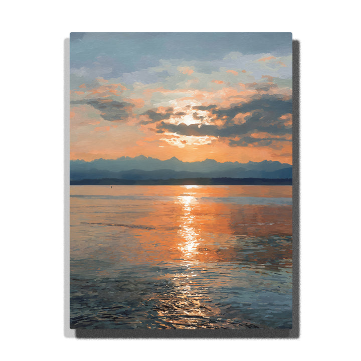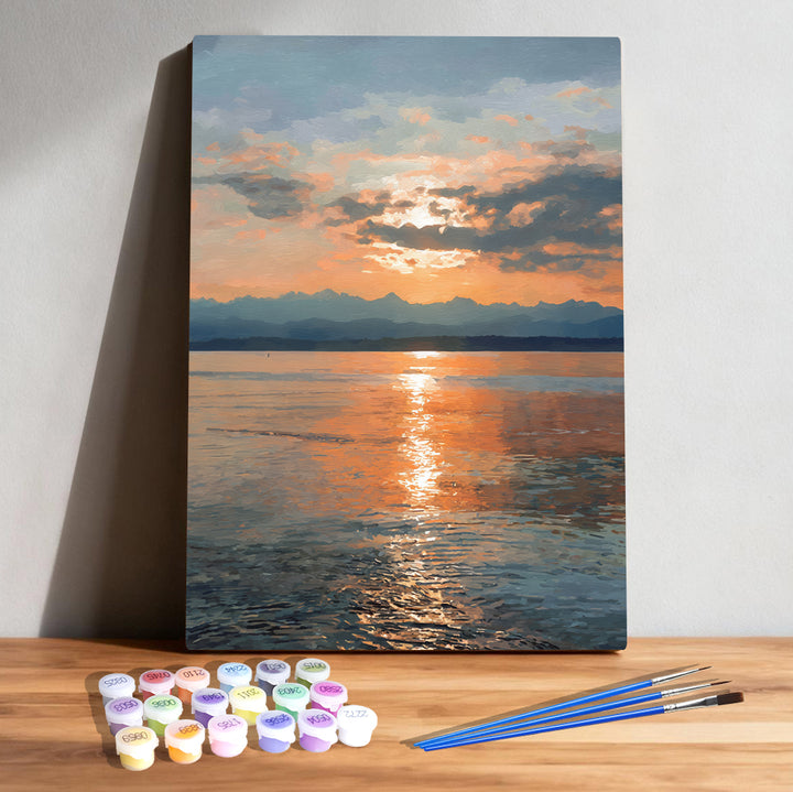 🌅 Lake Constance Sunset Paint by Numbers | Golden Reflections & Alpine Horizon | PaintEasy