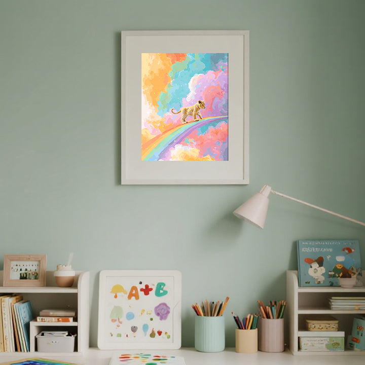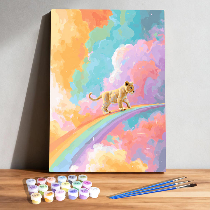 Lion on a Rainbow Path Paint by Numbers | Colorful Lion Cub Art Kit | PaintEasy