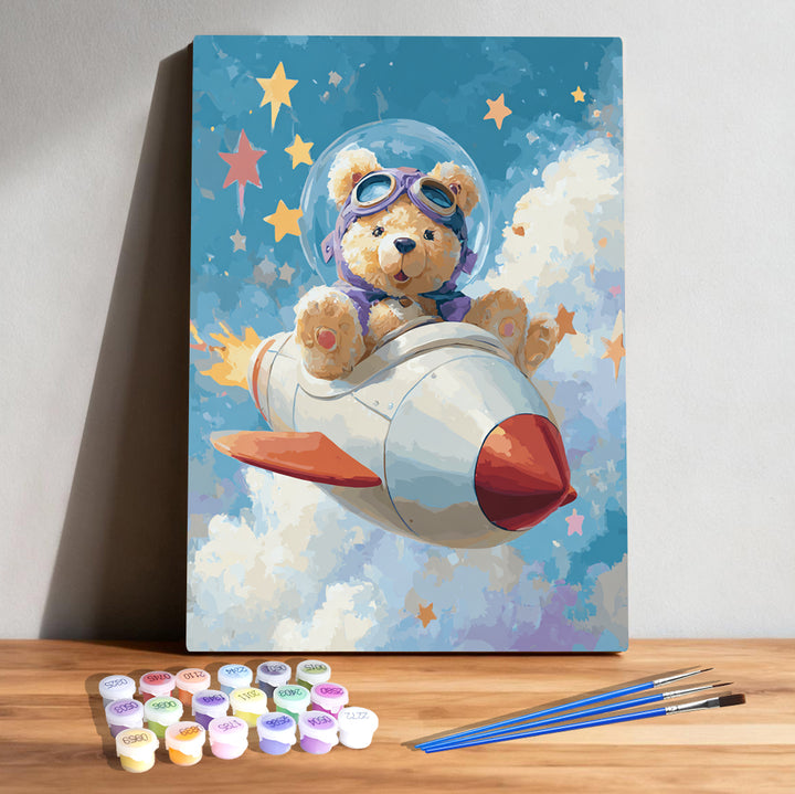 Little Rocket Pilot Bear Paint by Numbers | Kids Rocket Bear Art Kit | PaintEasy
