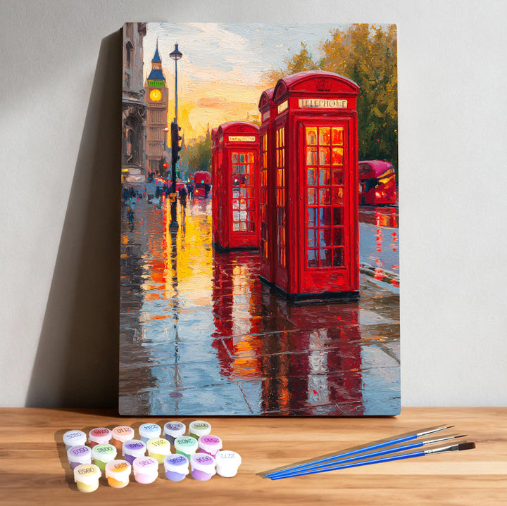 London Red Phone Booths – UK Paint by Numbers Kit | PaintEasy