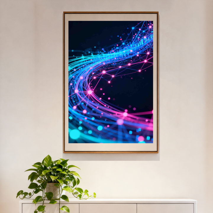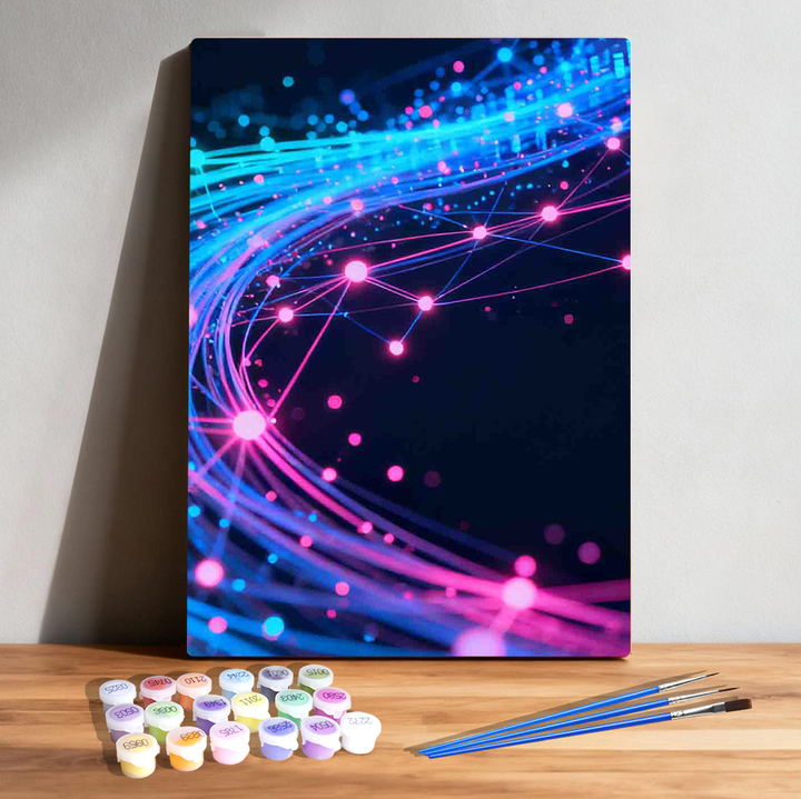 Lucid Stream Paint by Numbers | Abstract Neural Network Flow in Pink & Cyan | Tech Luxe by PaintEasy