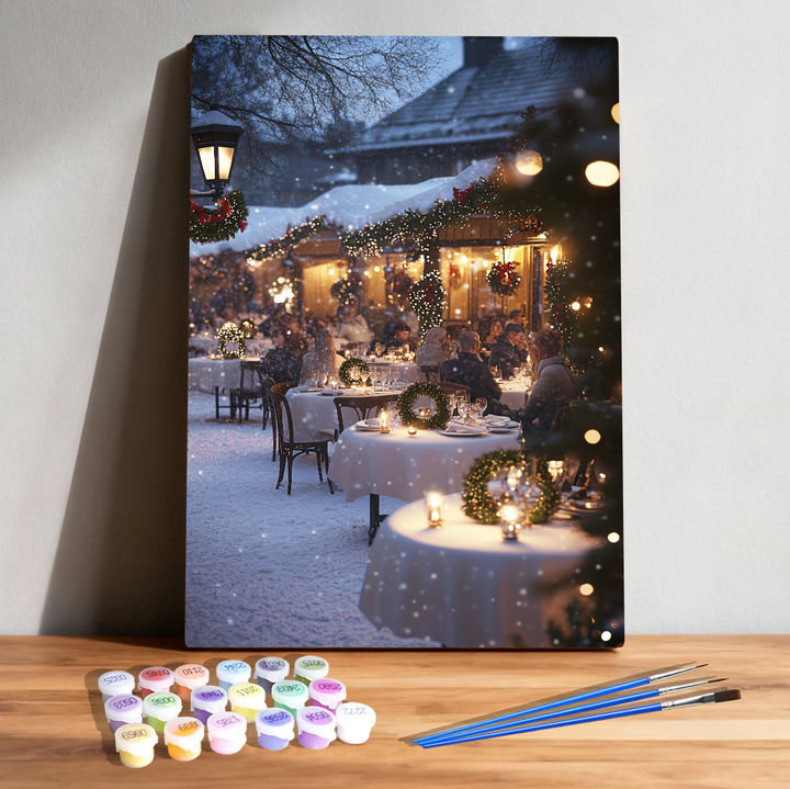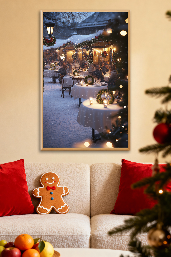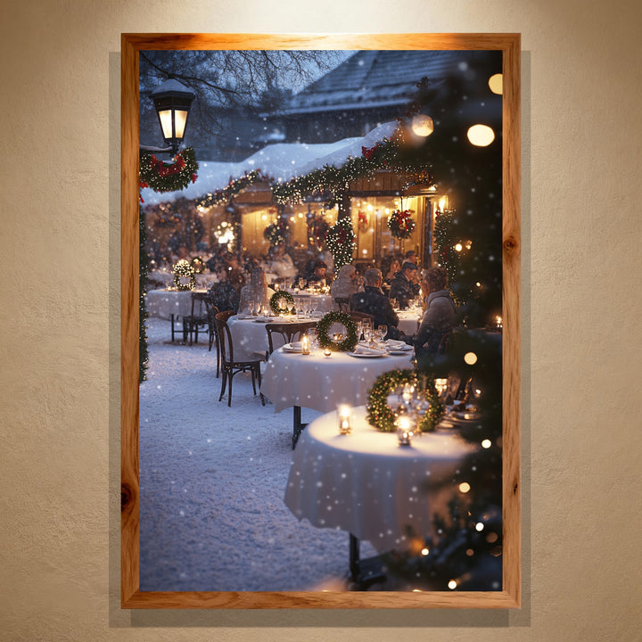 a snow-covered terrace, quiet laughter, and glasses that catch the light.