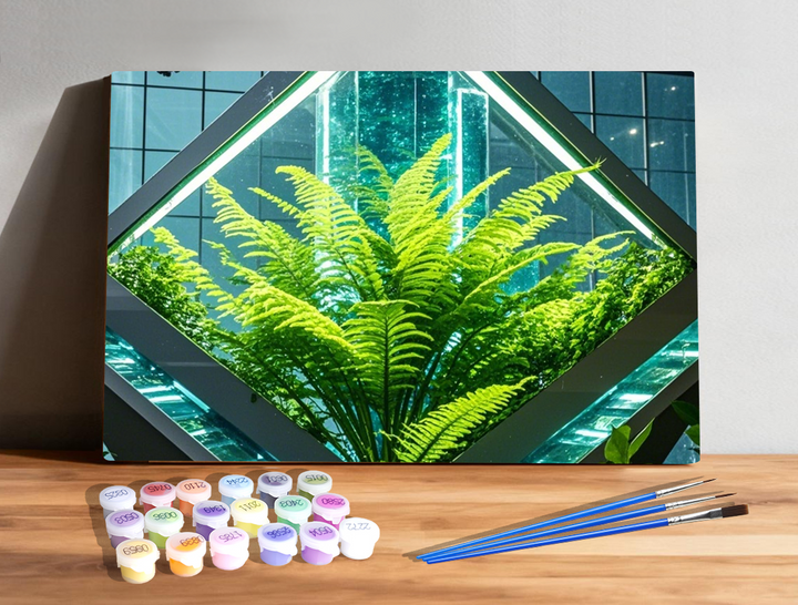 Lumina Verdant Paint by Numbers | Futuristic Terrarium in Diamond Frame | Tech Luxe by PaintEasy