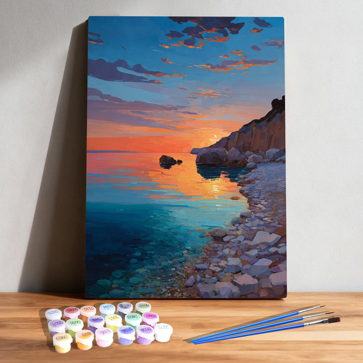 Mallorca Pebble Shore Sunset – Spain Paint by Numbers Kit | PaintEasy