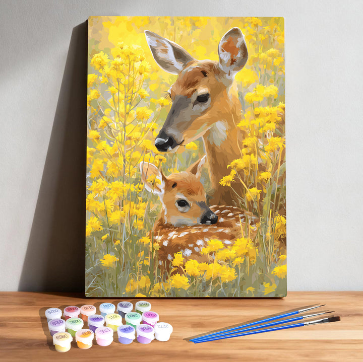 Mama Deer & Fawn Paint by Numbers | Meadow Deer Family DIY Painting Kit | PaintEasy