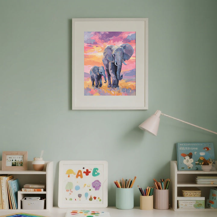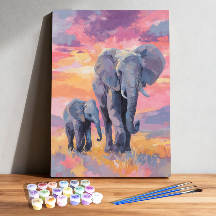 Mama Elephant & Baby Walking Paint by Numbers | Cute Elephant Family DIY Painting Kit | PaintEasy