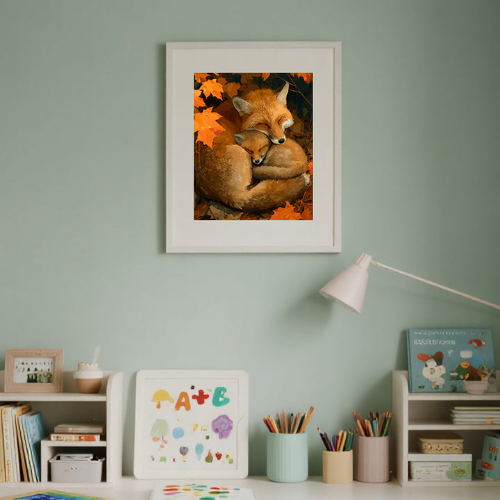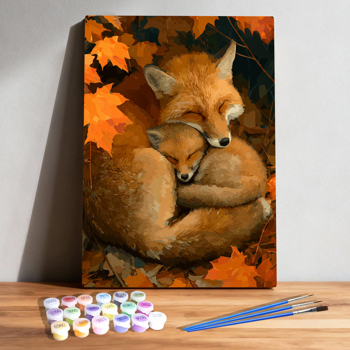 Mama Fox & Baby Nap Paint by Numbers | Cute Fox Family DIY Painting Kit | PaintEasy