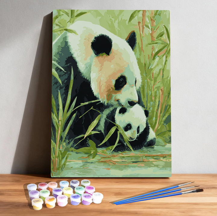 Mama Panda & Baby Paint by Numbers | Bamboo Forest Hug DIY Painting Kit | PaintEasy