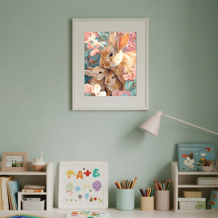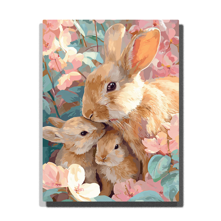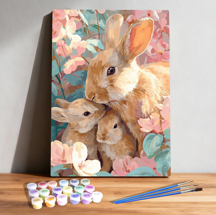 Mama Rabbit & Baby Bunnies Paint by Numbers | Spring Blossom Family DIY Kit | PaintEasy