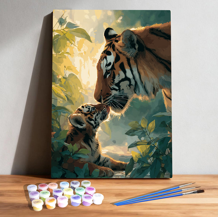 Mama Tiger & Baby Cub Paint by Numbers | Jungle Kiss DIY Kit | PaintEasy