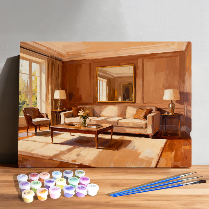 Mocha Mousse Elegant Living Room Glow Paint by Numbers Kit | PaintEasy