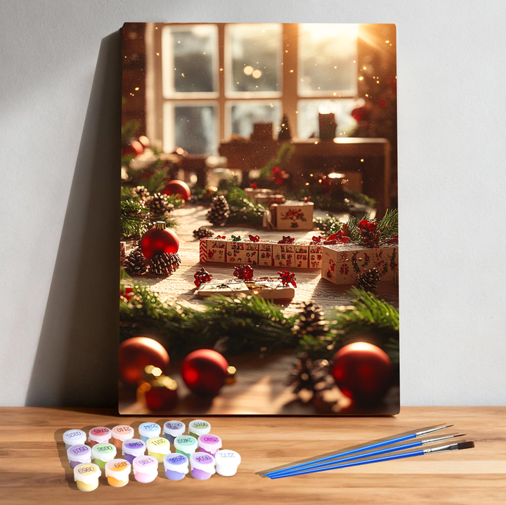 Morning Ember Paint by Numbers | Christmas Morning Light & Gift Table Scene | Frost Luxe Collection by PaintEasy