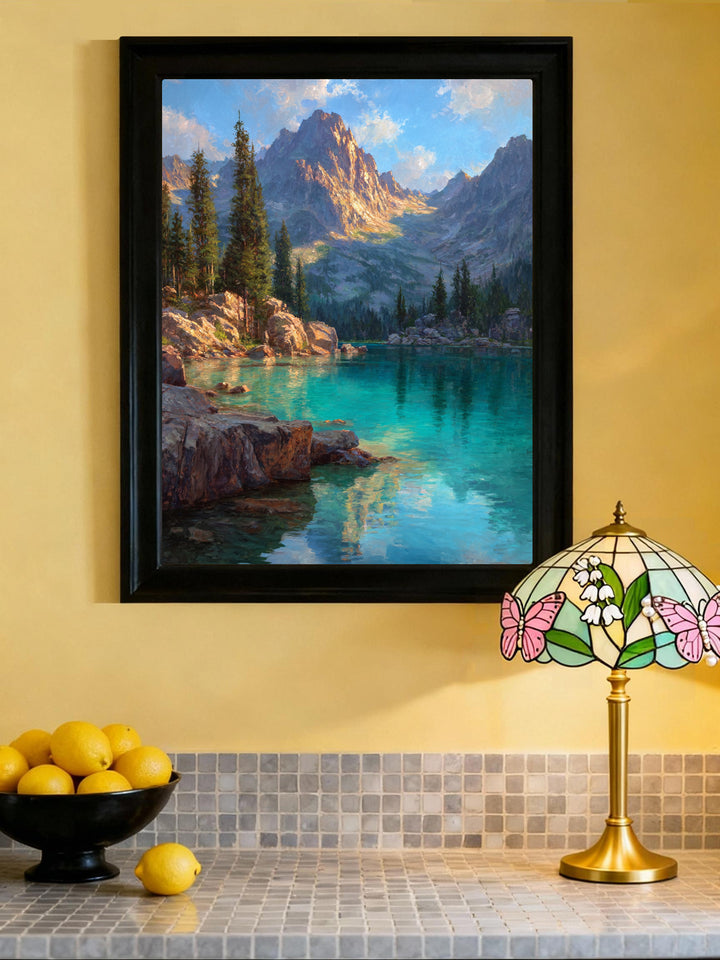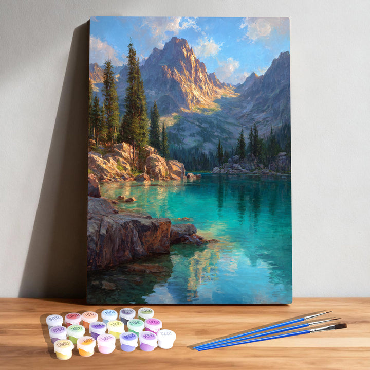 Mountain Lake Sunrise Paint by Numbers | Serene Turquoise Waters Landscape Art Kit | PaintEasy