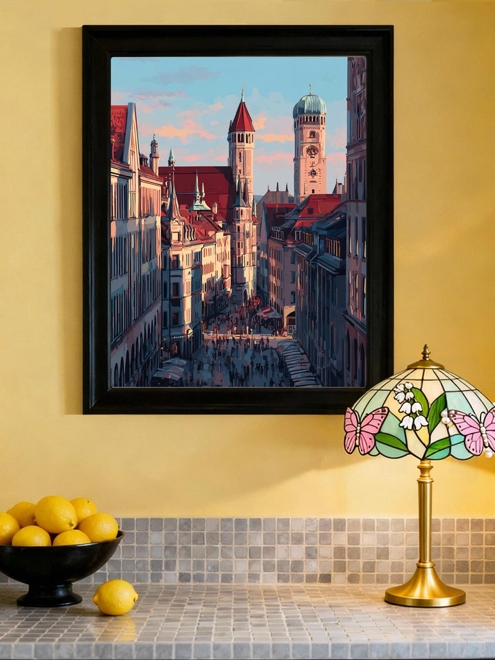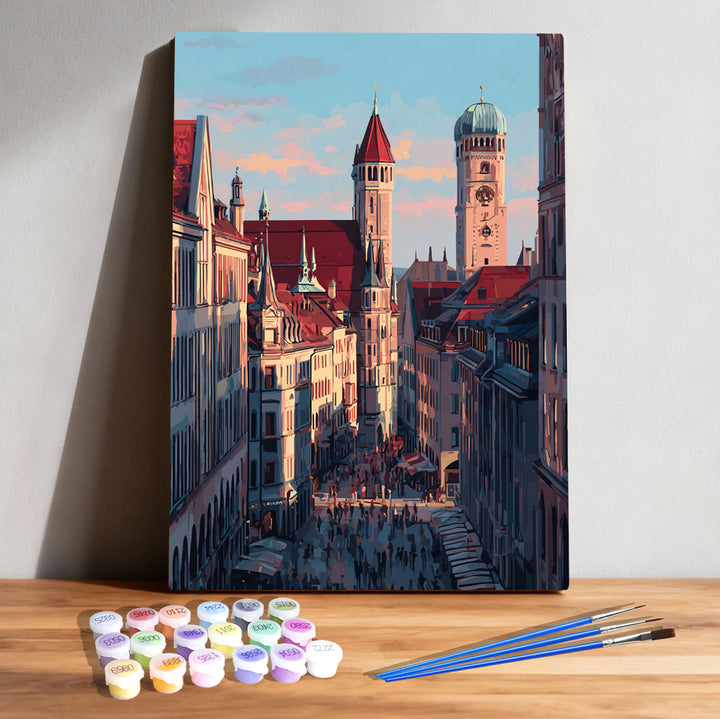 🕍 Munich Marienplatz Paint by Numbers | Bavarian Cityscape at Sunset | PaintEasy