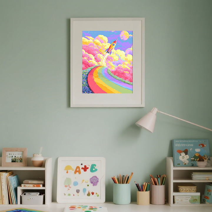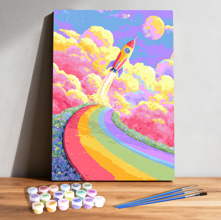 Rainbow Rocket Path Paint by Numbers | Kids Rocket Adventure Art Kit | PaintEasy