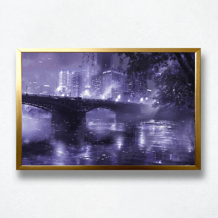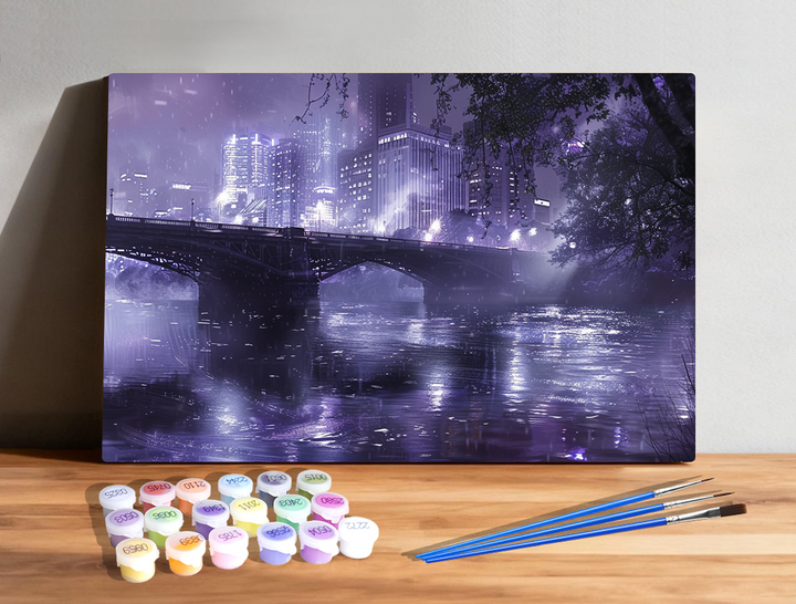 Neon Reverie Paint by Numbers | Purple Rain City Bridge Scene | PaintEasy®