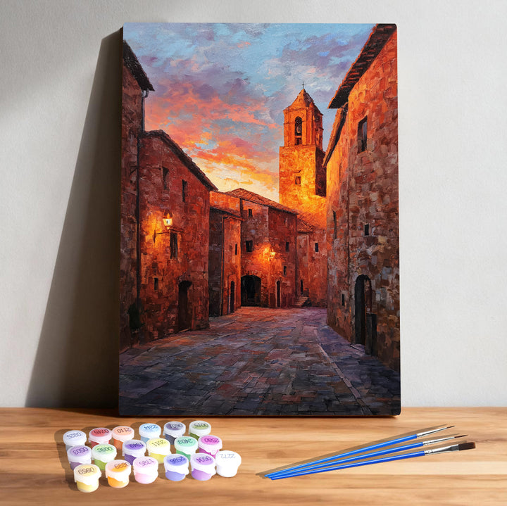 Old Town Sunset Glow – Siena Italy Paint by Numbers Kit | PaintEasy