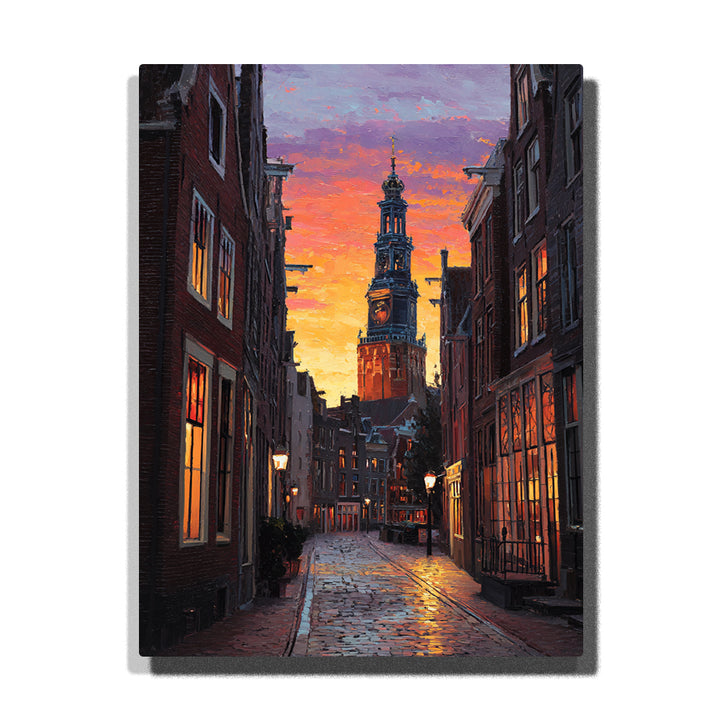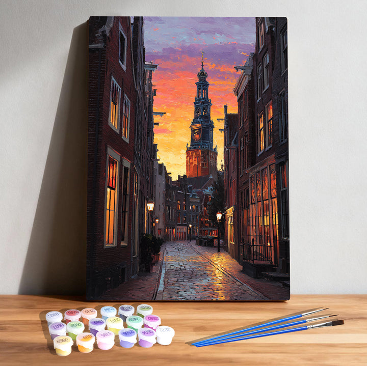Old Town Sunset Street – Netherlands Paint by Numbers Kit | PaintEasy