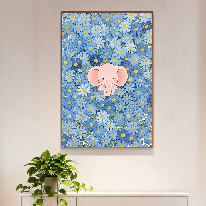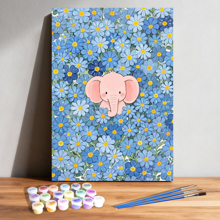 Paint by Numbers: Baby Elephant Among Blue Daisies