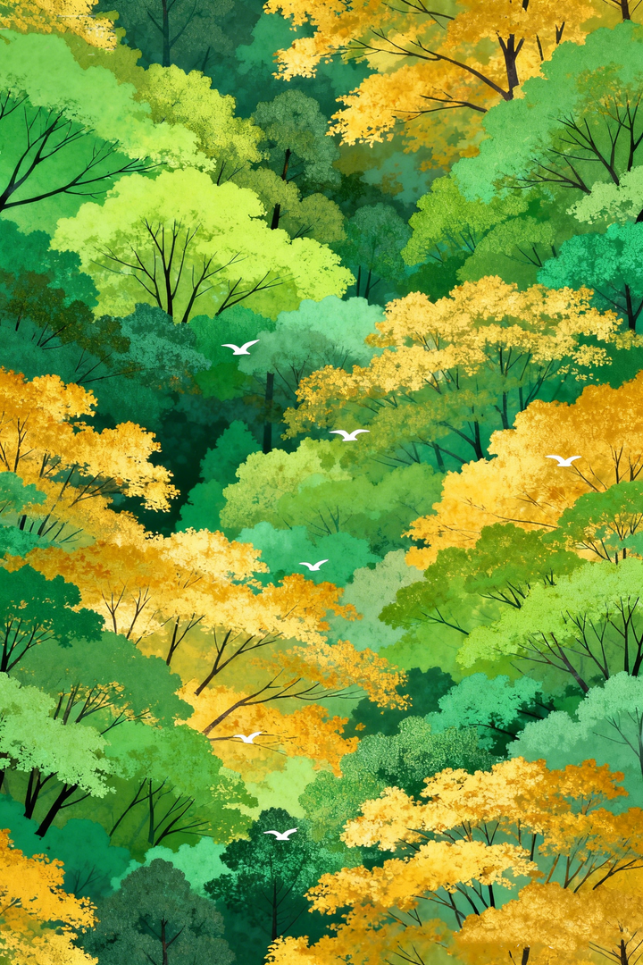 Paint by Numbers: Birds in Colorful Forest Canopy