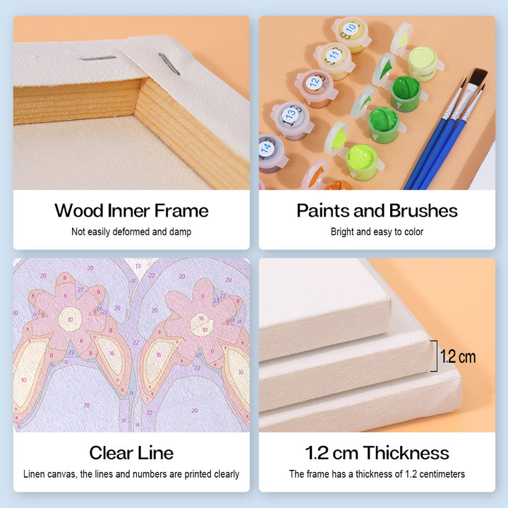 Unveil every essential neatly packed in our Paint by Numbers kit. With each component labeled and ready to use, you can focus solely on your artistic journey. From the vibrant paints to the precision brushes, we've ensured that nothing stands between you and your canvas. Suitable for both beginners and seasoned artists, this kit offers a pure, uninterrupted painting experience.