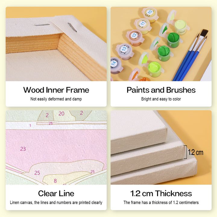 Unveil every essential neatly packed in our Paint by Numbers kit. With each component labeled and ready to use, you can focus solely on your artistic journey. From the vibrant paints to the precision brushes, we've ensured that nothing stands between you and your canvas. Suitable for both beginners and seasoned artists, this kit offers a pure, uninterrupted painting experience.