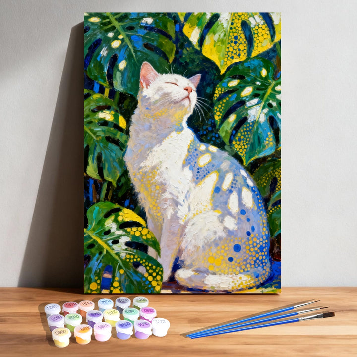 Paint by Numbers: Colorful Cat Among Tropical Plants