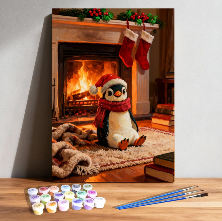 Paint by Numbers:Cozy Penguin by the Fireplace