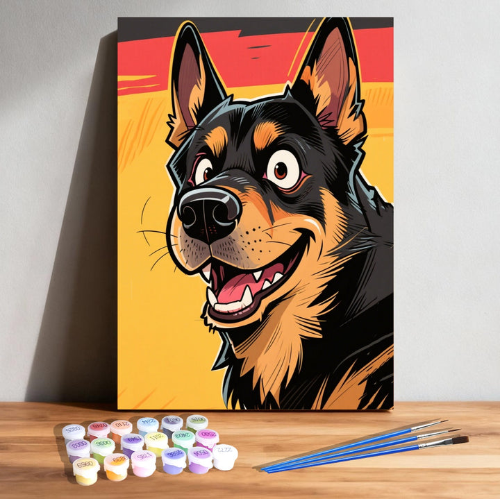 Paint by Numbers: Dynamic Comic Portrait of German Shepherd
