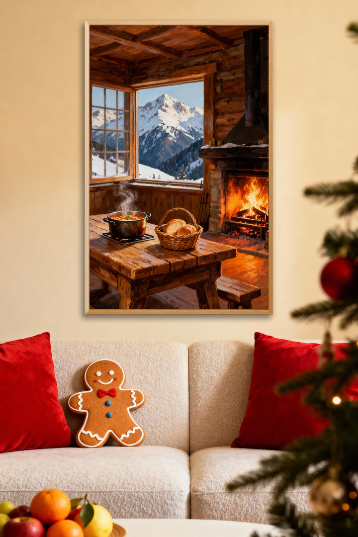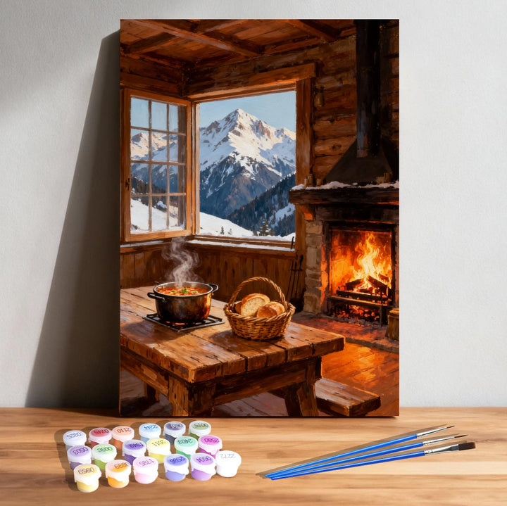 Paint by Numbers:Indoor Dining Table with Snowy Scenery