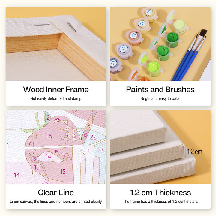 Unveil every essential neatly packed in our Paint by Numbers kit. With each component labeled and ready to use, you can focus solely on your artistic journey. From the vibrant paints to the precision brushes, we've ensured that nothing stands between you and your canvas. Suitable for both beginners and seasoned artists, this kit offers a pure, uninterrupted painting experience.