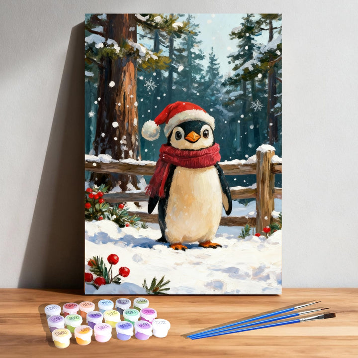 Paint by Numbers:Penguin in the Snowy Forest