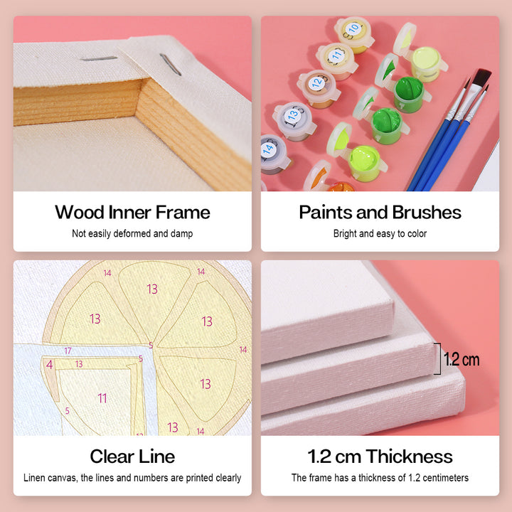 Unveil every essential neatly packed in our Paint by Numbers kit. With each component labeled and ready to use, you can focus solely on your artistic journey. From the vibrant paints to the precision brushes, we've ensured that nothing stands between you and your canvas. Suitable for both beginners and seasoned artists, this kit offers a pure, uninterrupted painting experience.