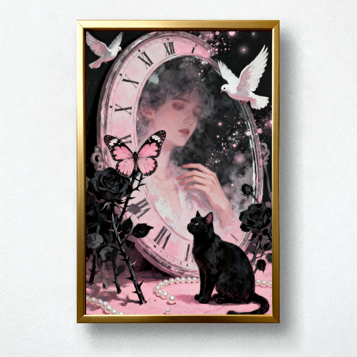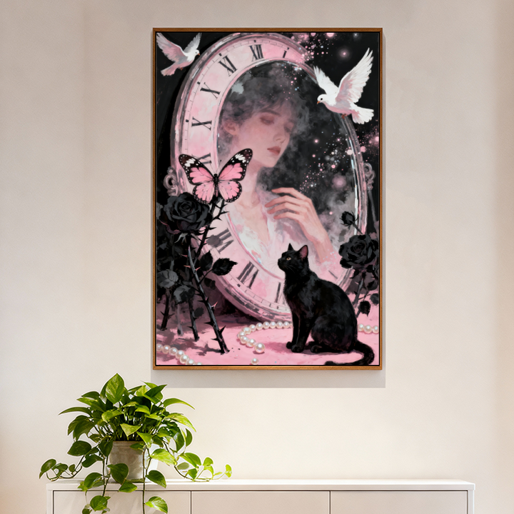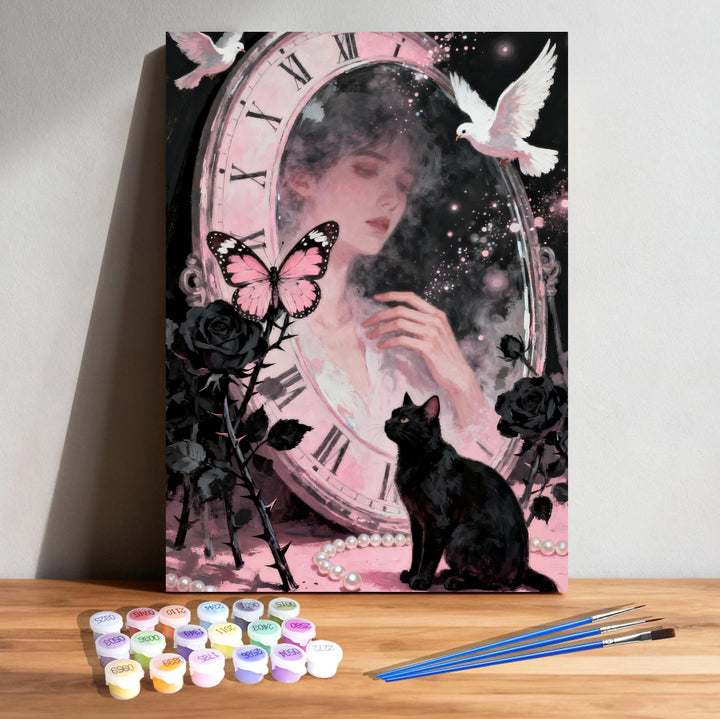 Paint by Numbers: Whimsical Realm of Clock, Butterfly and Black Cat