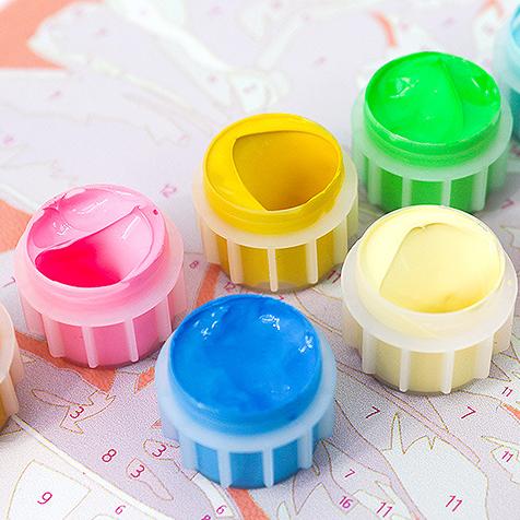Numbered acrylic-based paint set.