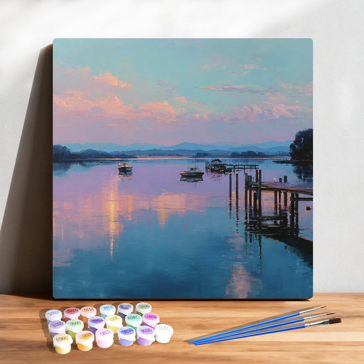Pastel Dusk Harbor Reflections Paint by Numbers | PaintEasy