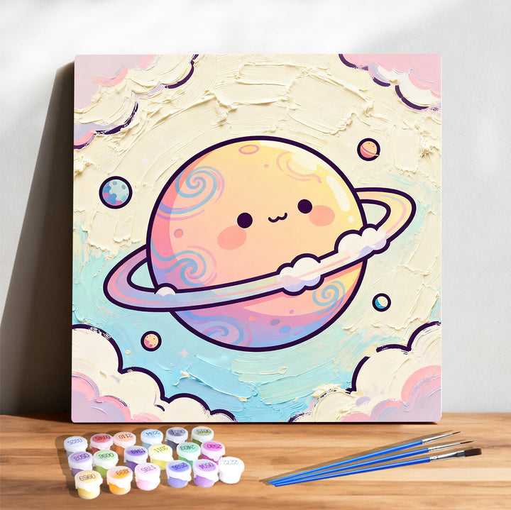 Pastel Saturn Dream Float – Cute Space Fantasy Paint by Numbers Kit | PaintEasy