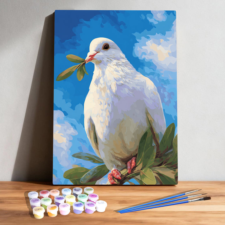 Peace Dove with Olive Branch – Bright Sky Hope & Gentle Faith Symbol Paint by Numbers Kit | PaintEasy