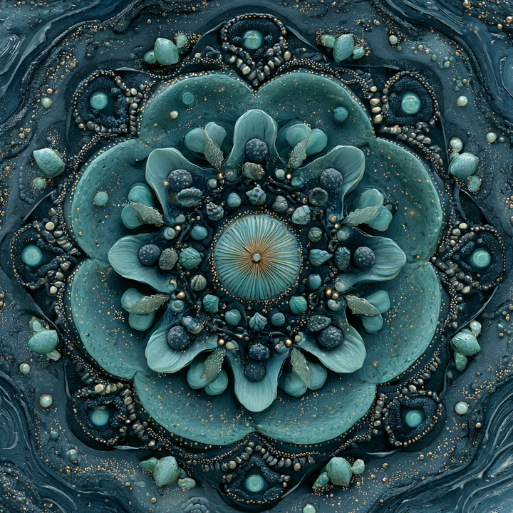 ● 🐚 Deep Ocean Mandala Design – Layered with pearls, corals, and soft marine textures.