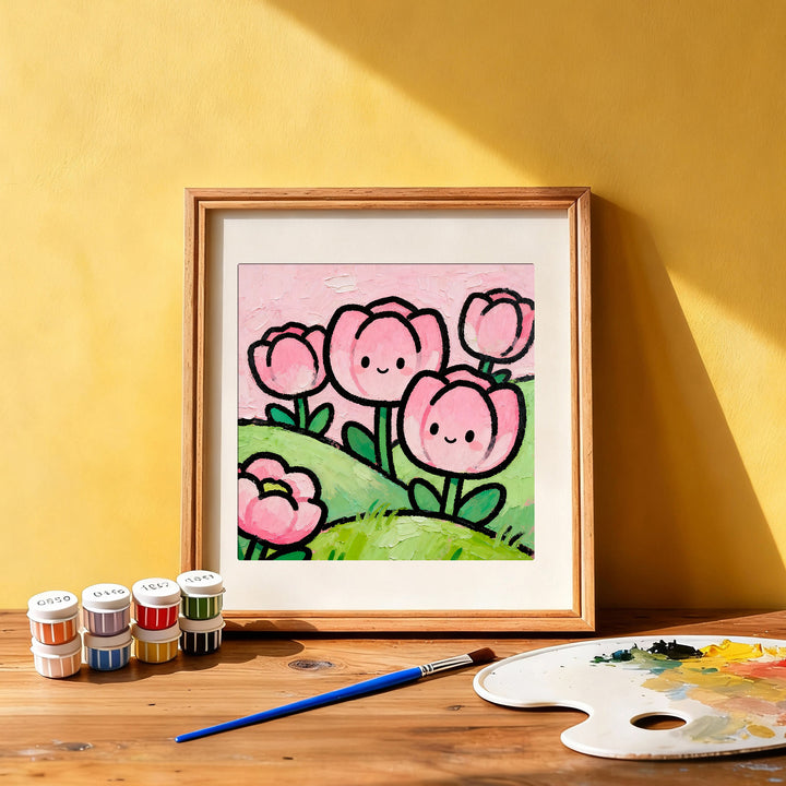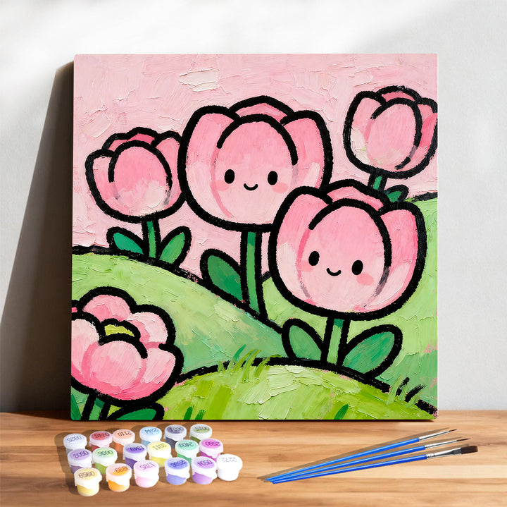 Pink Tulip Garden – Cute Spring Blossom Paint by Numbers Kit | PaintEasy