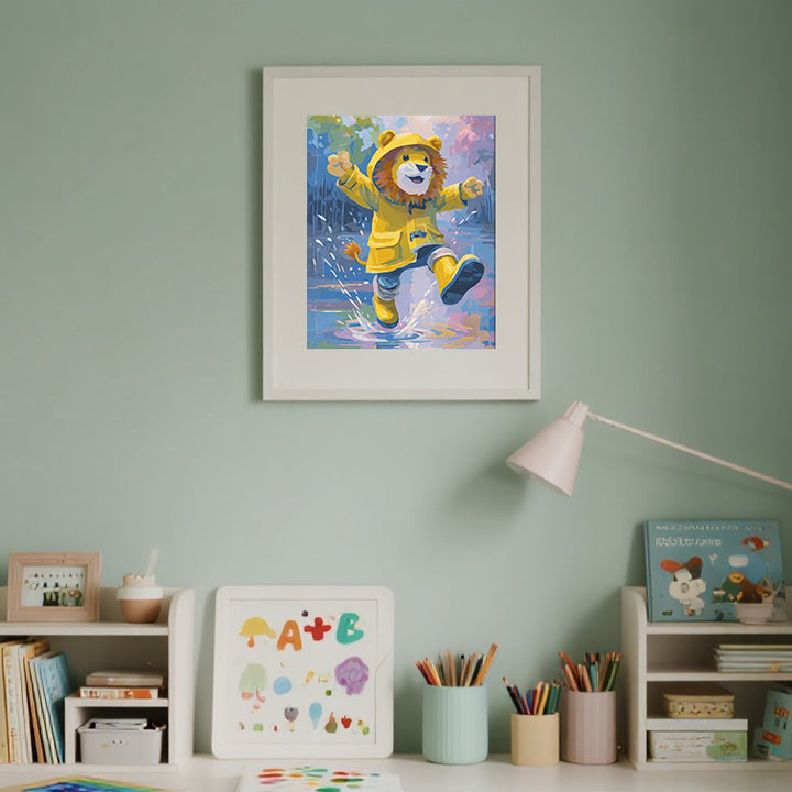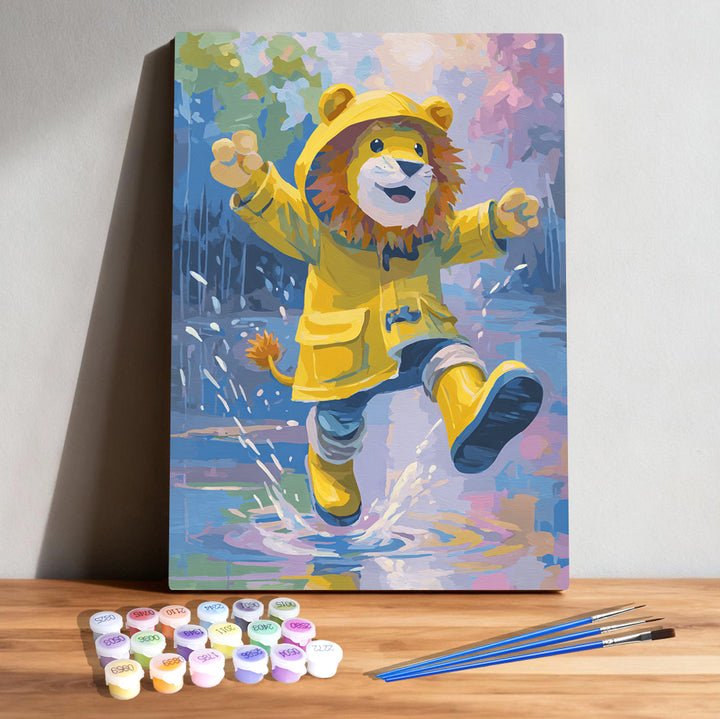 Raincoat Lion Adventure Paint by Numbers | Lion Cub in Raincoat Art Kit | PaintEasy