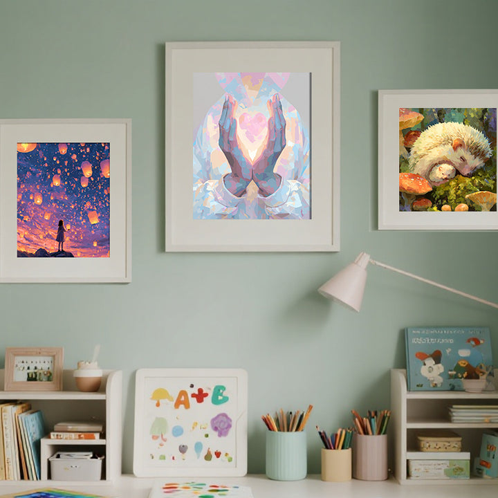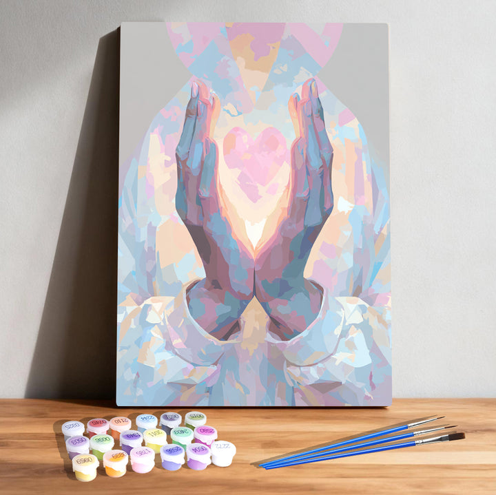 Praying Hands Holding Heart of Light – Gentle Grace & Healing Faith Glow Paint by Numbers Kit | PaintEasy