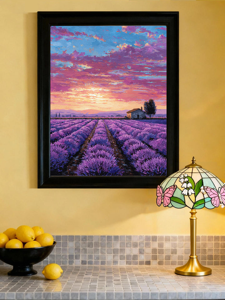 Provence Lavender Sunset captures the magic of golden hour in the French countrysideā