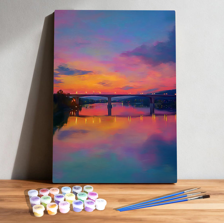 🌈 Rainbow Bridge Sunset Paint by Numbers Kit | Colorful Evening Reflection | PaintEasy