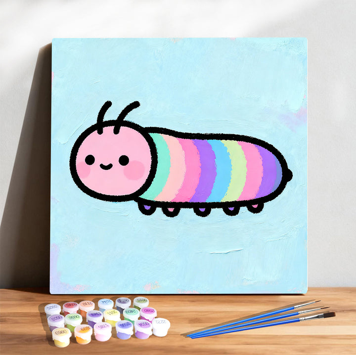 Rainbow Crawler Cutie – Happy Little Trail Paint by Numbers Kit | PaintEasy