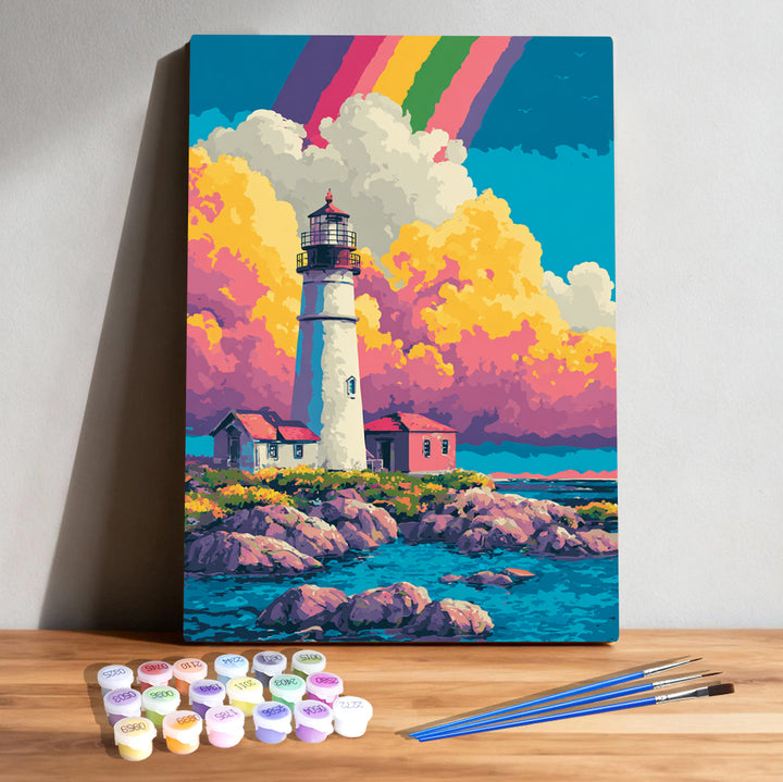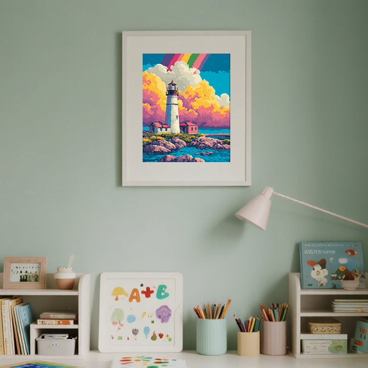 Rainbow Harbor Lighthouse Glow – Kids Paint by Numbers Kit | PaintEasy