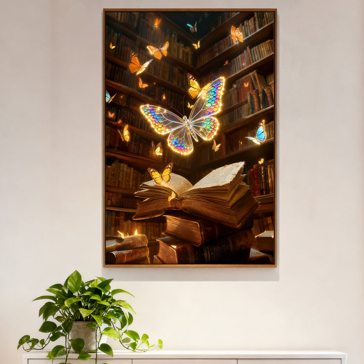 ● 📚 Vintage Library Setting – Towering wooden shelves and classic leather-bound books.